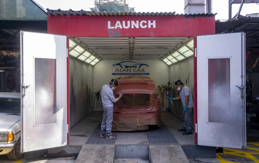 En ALANCAR, un acabado de pintura perfecto es el resultado de un proceso de alta tecnología. Para ello, utilizamos una cabina de pintura presurizada y un horno de secado especializado. Primero, preparamos y pintamos tu vehículo en un ambiente completamente aislado y libre de impurezas, lo que garantiza una aplicación uniforme y sin defectos. Este entorno con temperatura controlada permite que la pintura se asiente de manera óptima sobre la carrocería.